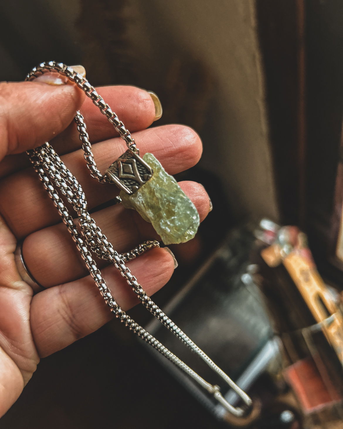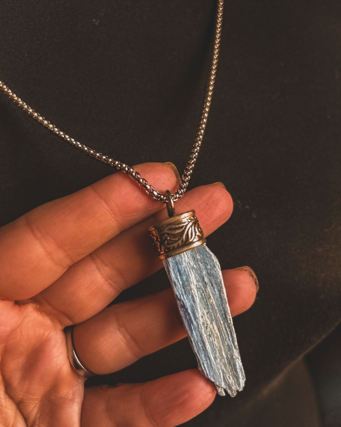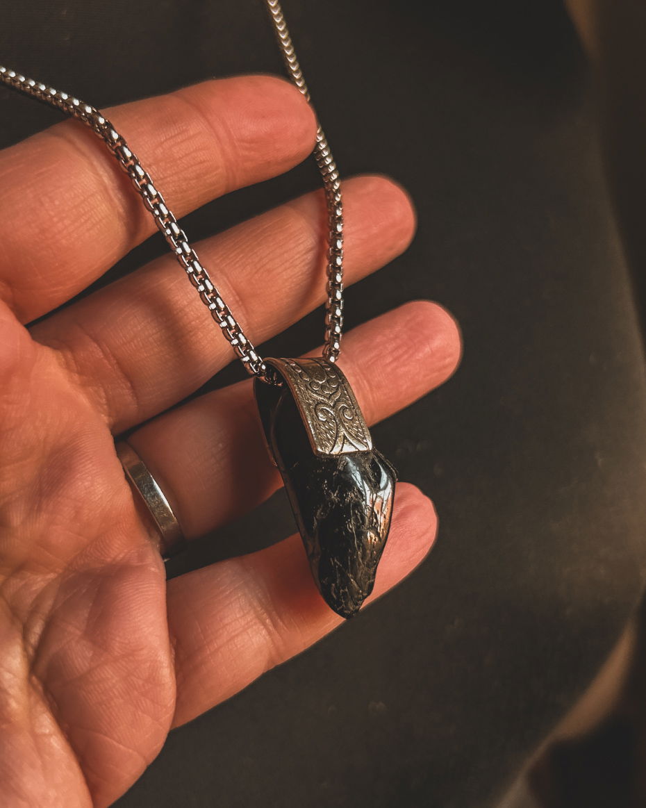 piedras energeticas en dije y capuchones de alpaca labrado