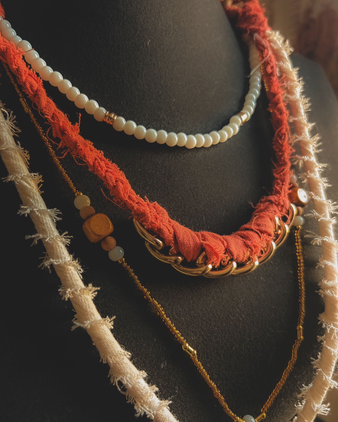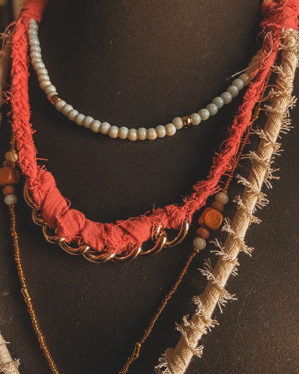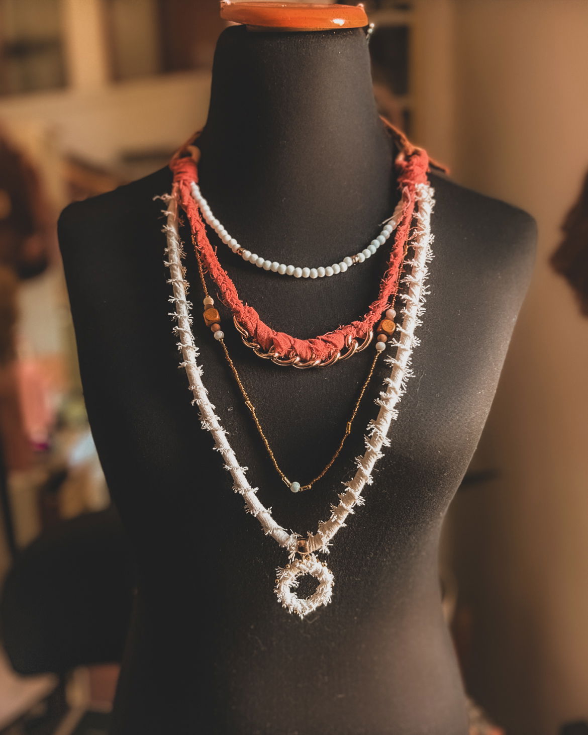 realizado con piedras naturales, mostacillas, telas, madera y mucho trabajo artesanal.