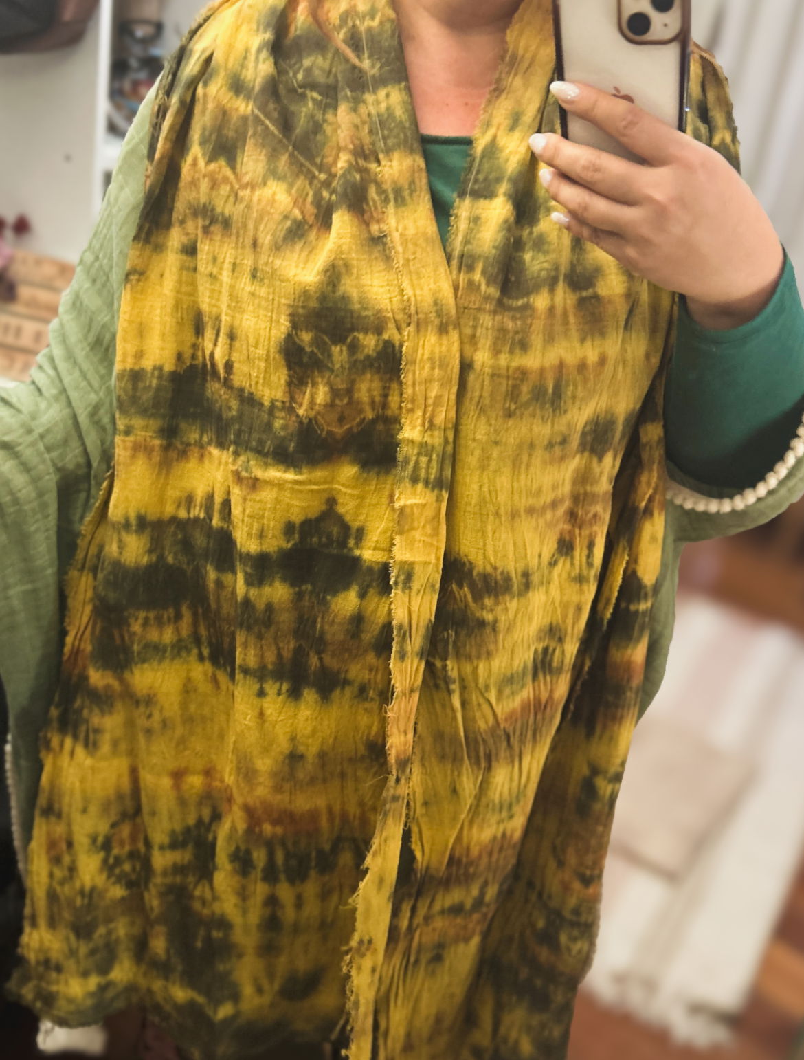 Precioso pañuelo realizado con tecnica de teñido artesanal tie dye, cada uno es completamente unico en su diseño y color, lo podes usar en la cabeza, en el cuello, como top, como pareo! usalo de mil formas! medidas aprox: 2,30 x 50cm