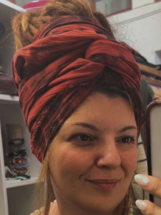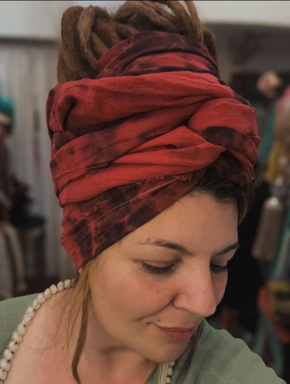 Precioso pañuelo realizado con tecnica de teñido artesanal tie dye, cada uno es completamente unico en su diseño y color, lo podes usar en la cabeza, en el cuello, como top, como pareo! usalo de mil formas! medidas aprox: 2,30 x 50cm