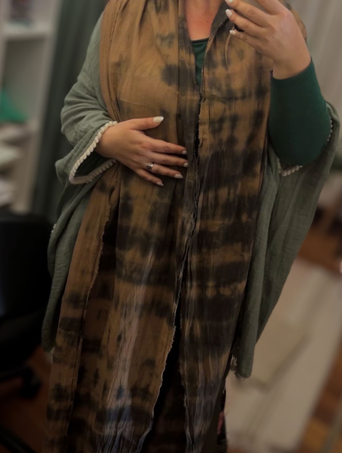 Precioso pañuelo realizado con tecnica de teñido artesanal tie dye, cada uno es completamente unico en su diseño y color, lo podes usar en la cabeza, en el cuello, como top, como pareo!