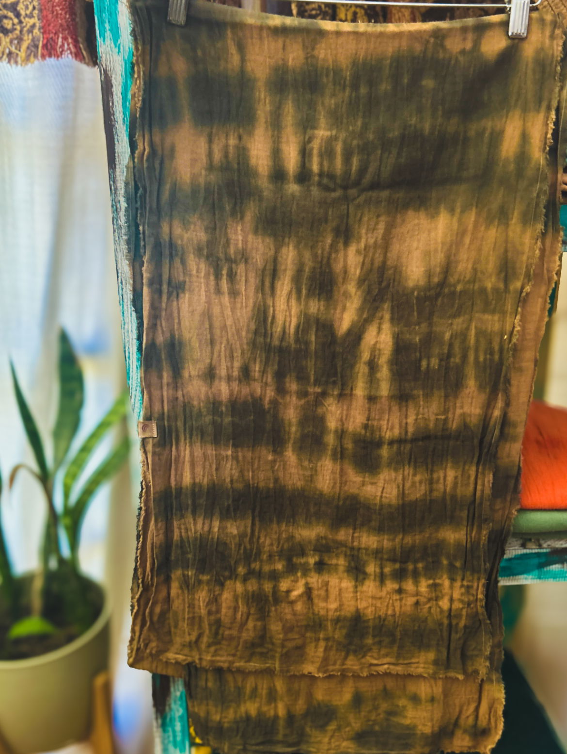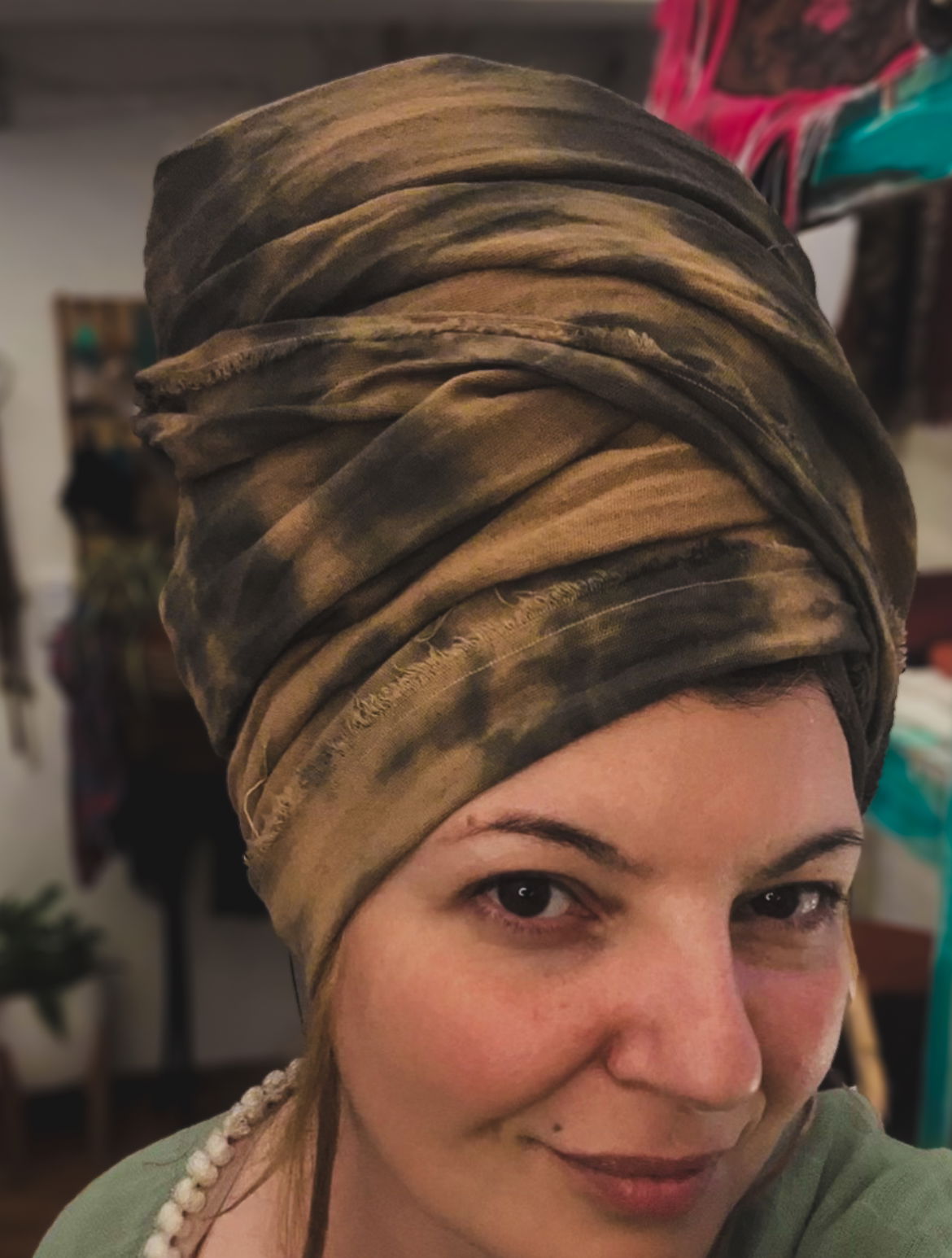 Precioso pañuelo realizado con tecnica de teñido artesanal tie dye, cada uno es completamente unico en su diseño y color, lo podes usar en la cabeza, en el cuello, como top, como pareo!