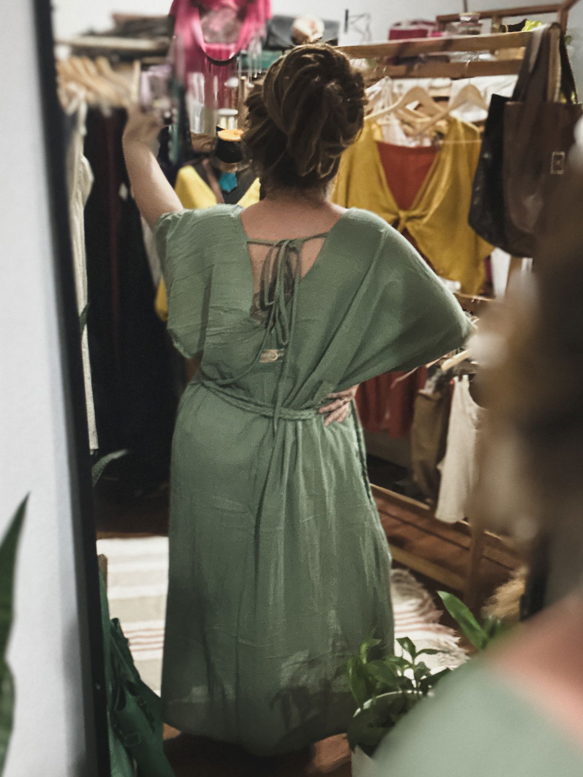 se recomienda usarlo sin corpiño para darle un aire de Diosa Griega de época.