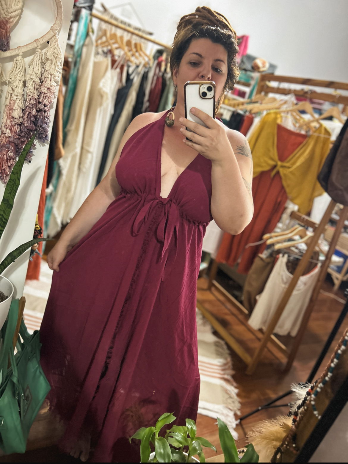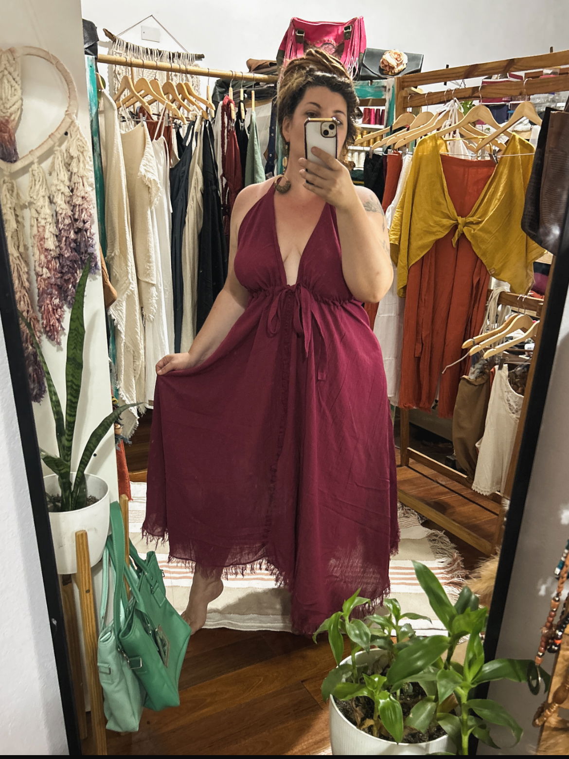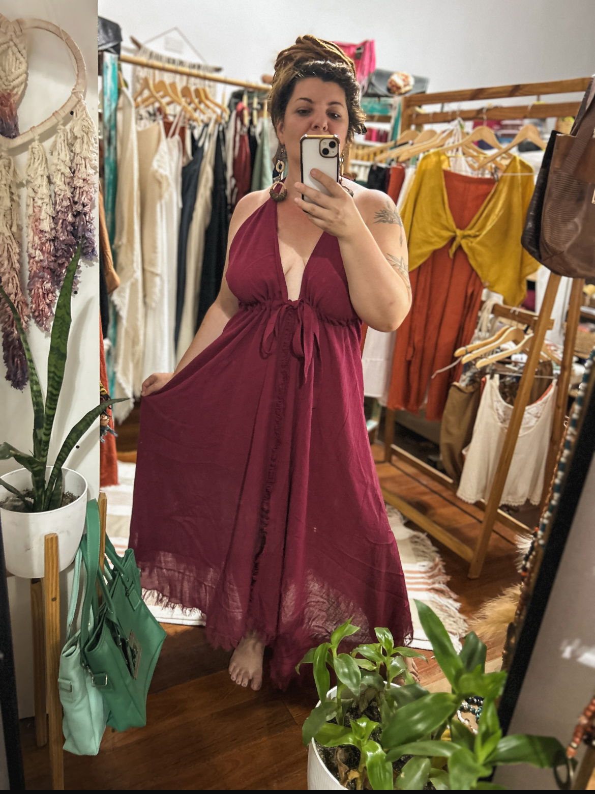 Éste es el nuevo vestido raíz, como su nombre lo indica y como toda esta linea es fruto de mi impregnacion y adoracion por lo terrenal, chamanico, ancestral, y cultural, es un vestido etnico que te conecta con lo mas profundo.