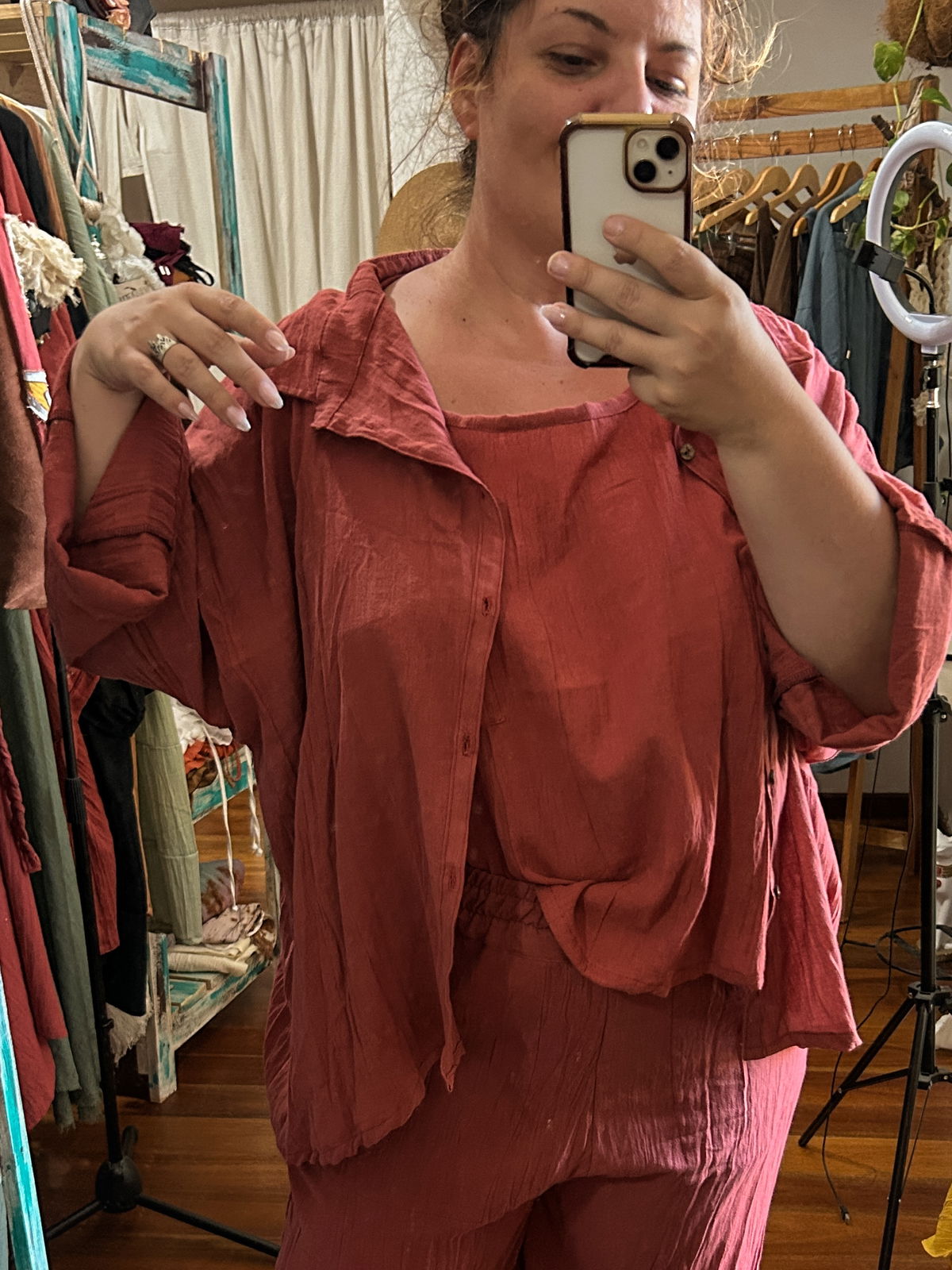 Realizada en gasa de algodon 100% y botones de coco.