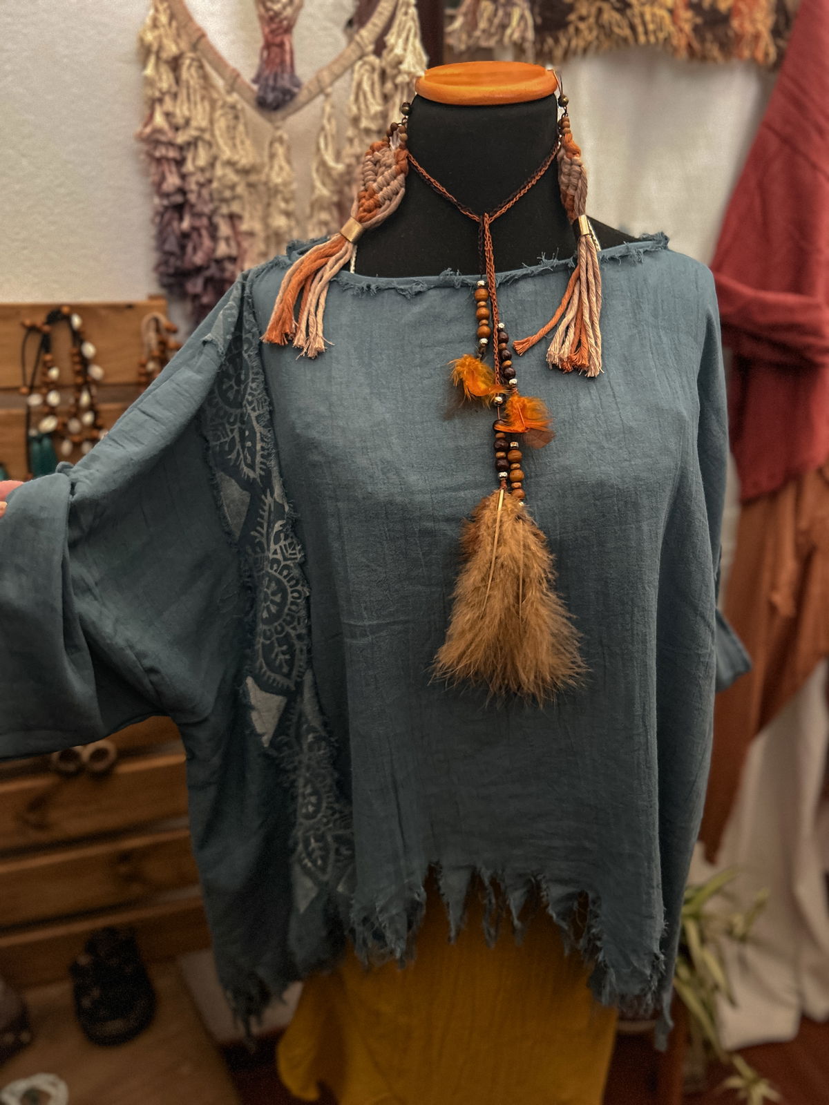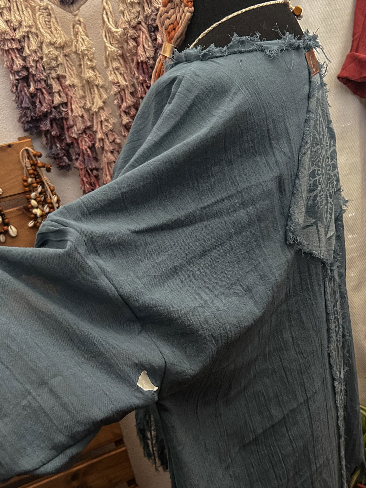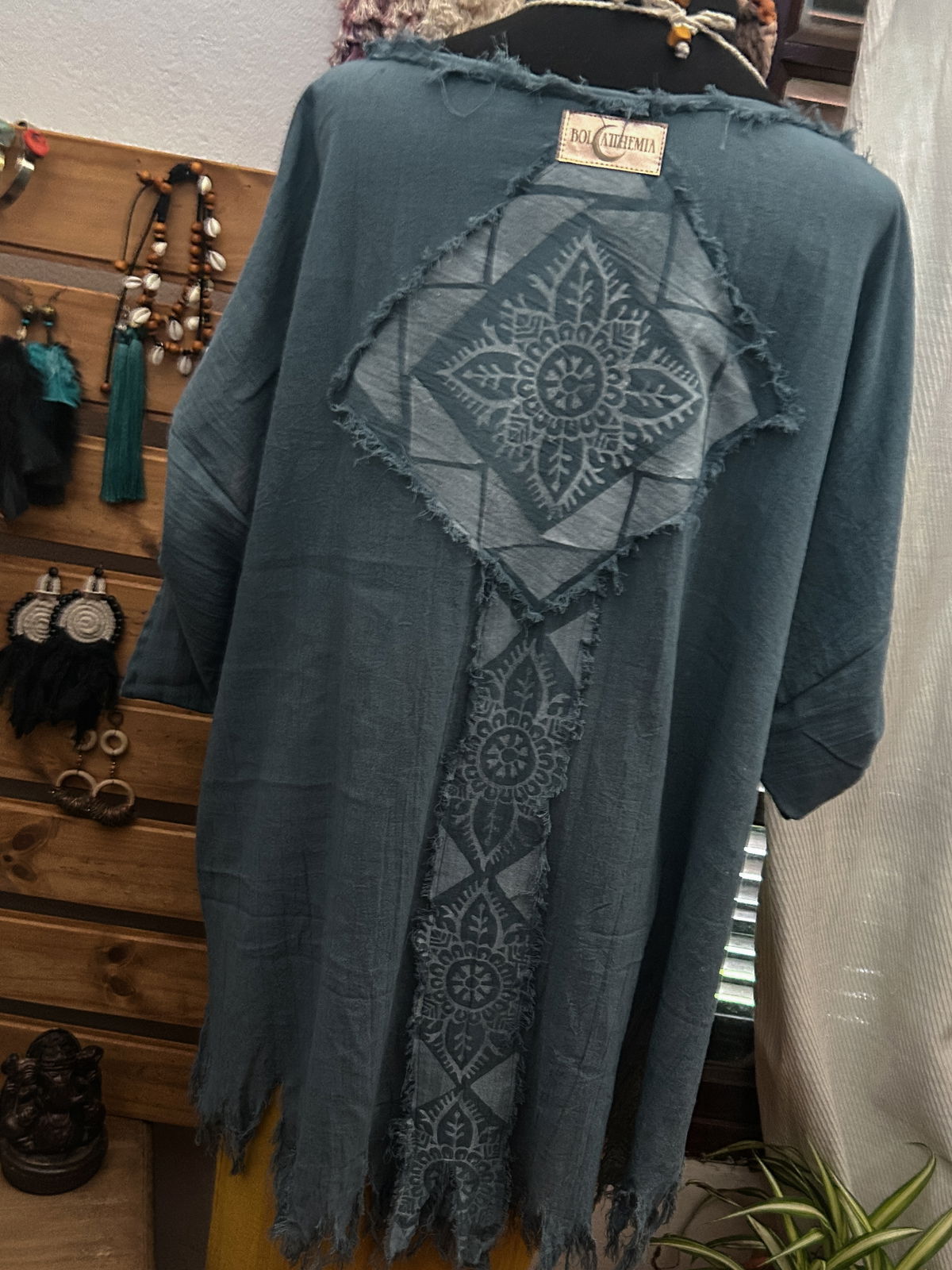 Bluson realizado en gasa 100% de algodon liviana prmeium. Diseño de estamoado y apliques artesanales